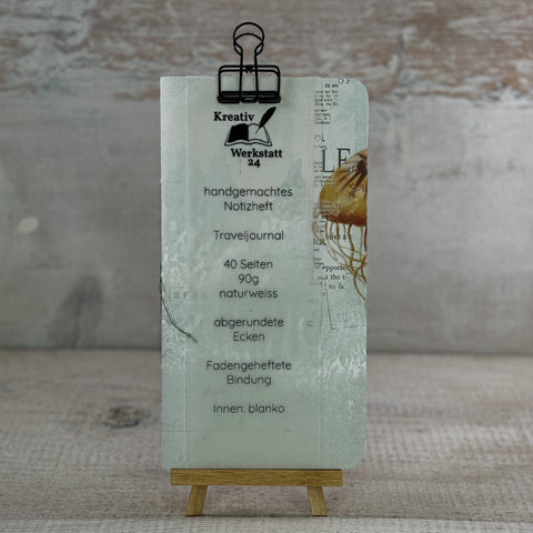 Dieses handgefertigte Travel- und ARTjournal passt in meine Filzmappen, sowie auch im Handel erhältliche Hüllen.