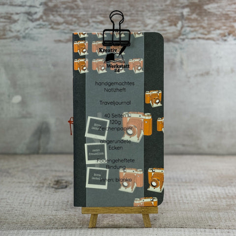The handmade travel and ART journal is a versatile and creative medium for recording ideas, travel reports and thought games. Since it fits into standard felt folders and sleeves, it is also practical and easy to transport.