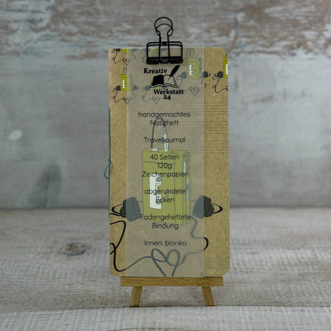 Le journal de voyage et d'ART fait main est un support polyvalent et créatif pour enregistrer des idées, des rapports de voyage et des jeux de réflexion. Puisqu’il s’insère dans les chemises et pochettes en feutre standards, il est également pratique et facile à transporter.